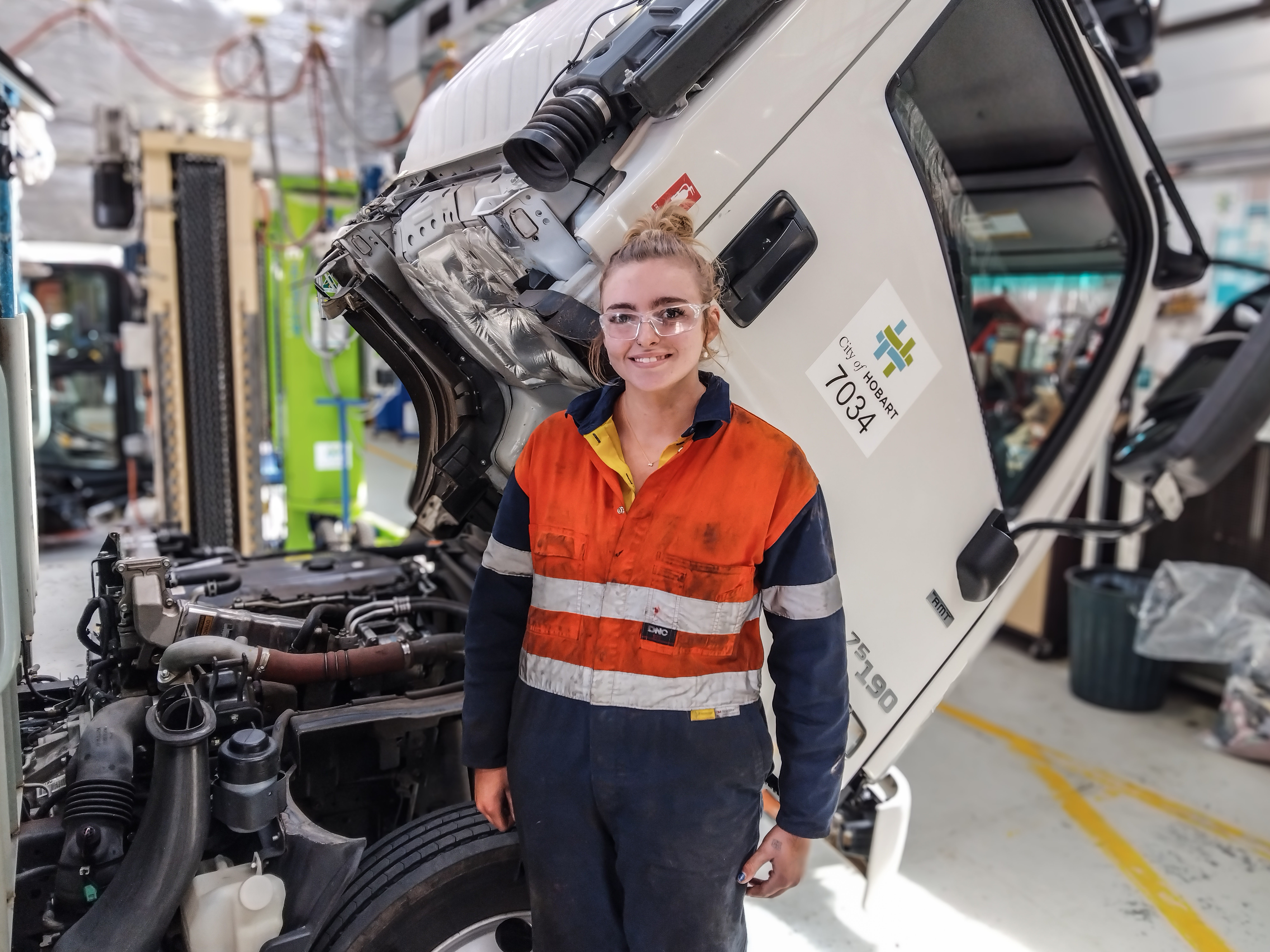 “My apprenticeship means embarking on an exciting journey to becoming a qualified diesel mechanic – and breaking the cycle by being the first-ever female diesel fitter that Hobart City Council has had,” Harriett said.